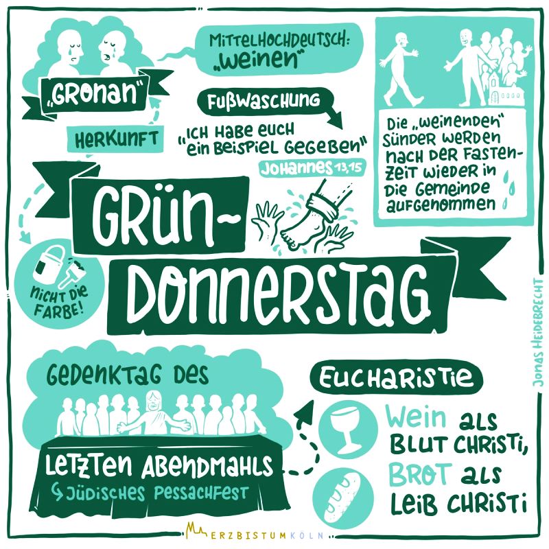 Mit dem Gründonnerstag beginnen die drei Tage von Leiden, Tod und Auferstehung Jesu. Die Kirche gedenkt hier besonders des letzten Abendmahls, das Jesus vor seinem Tod mit den Jüngern hielt.