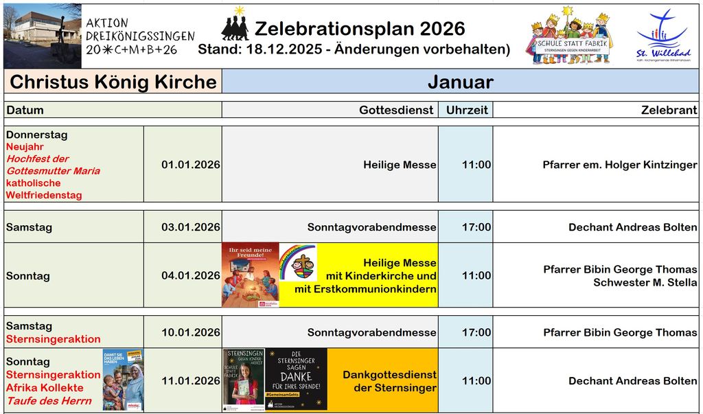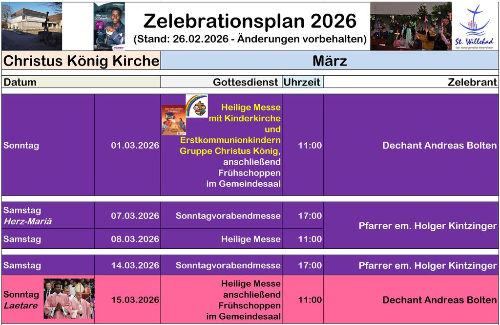 Start > Seelsorge > Gottesdienste > Zelebrationsplan | Kirchen > Christus König