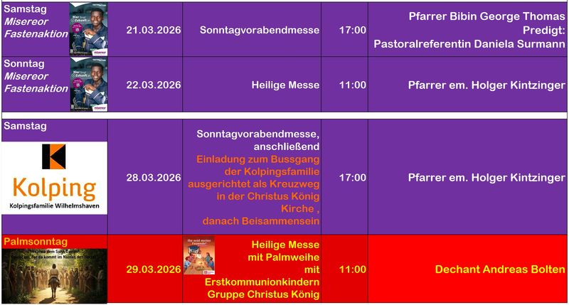 Adresse: Christus König Kirche, Posener Straße 45, 26388 Wilhelmshaven