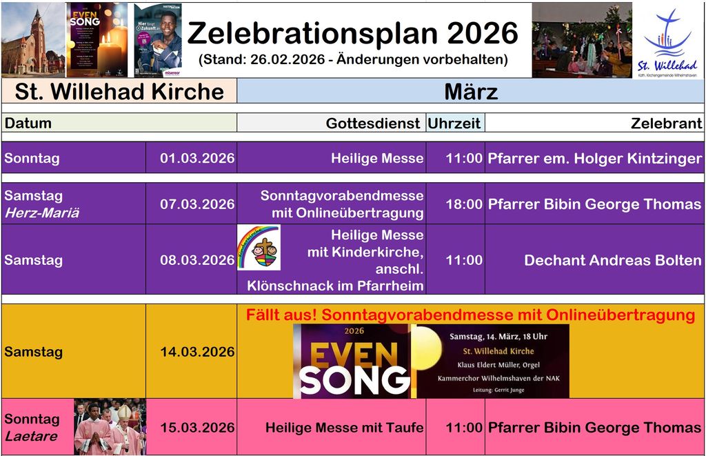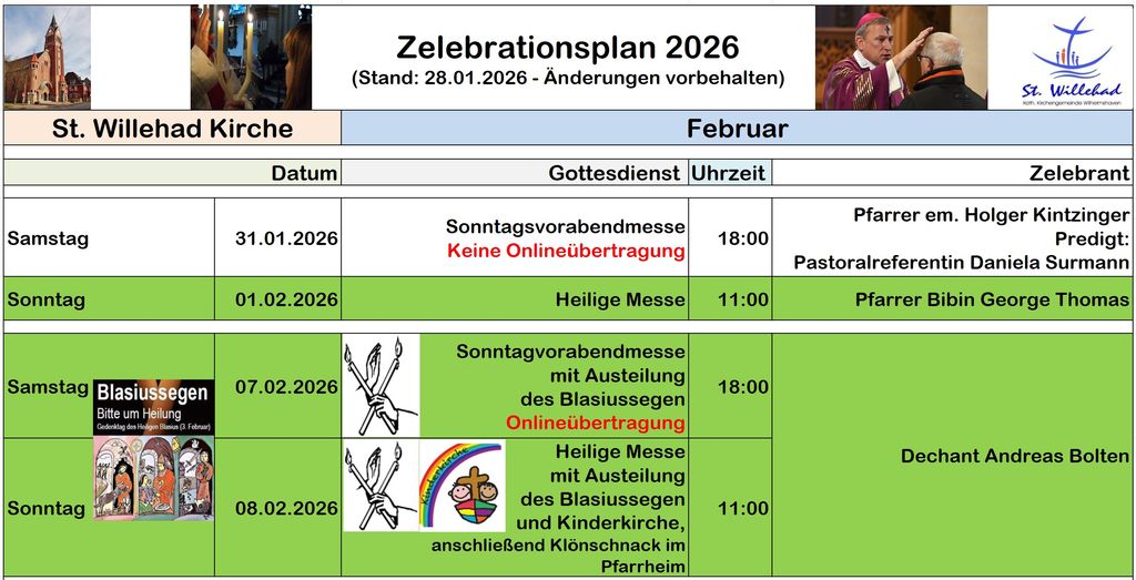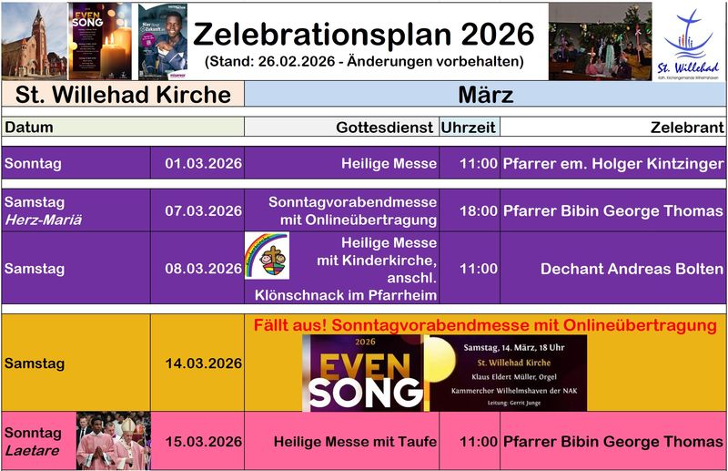 Start > Seelsorge > Gottesdienste > Zelebrationsplan | Kirchen > St. Willehad